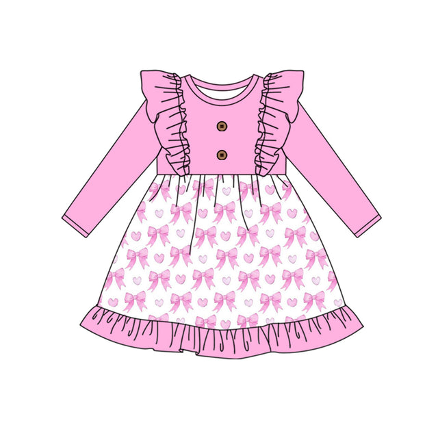 Pink bow heart long sleeves baby girls valentine's dress - 3-6M is backordered and will ship as soon as it is back in stock.