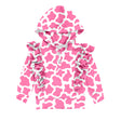 Pink cow print long sleeves ruffle girls hoodie - 3-6M is backordered and will ship as soon as it is back in stock.