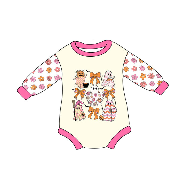 Pink flower long sleeves ghost baby Halloween romper