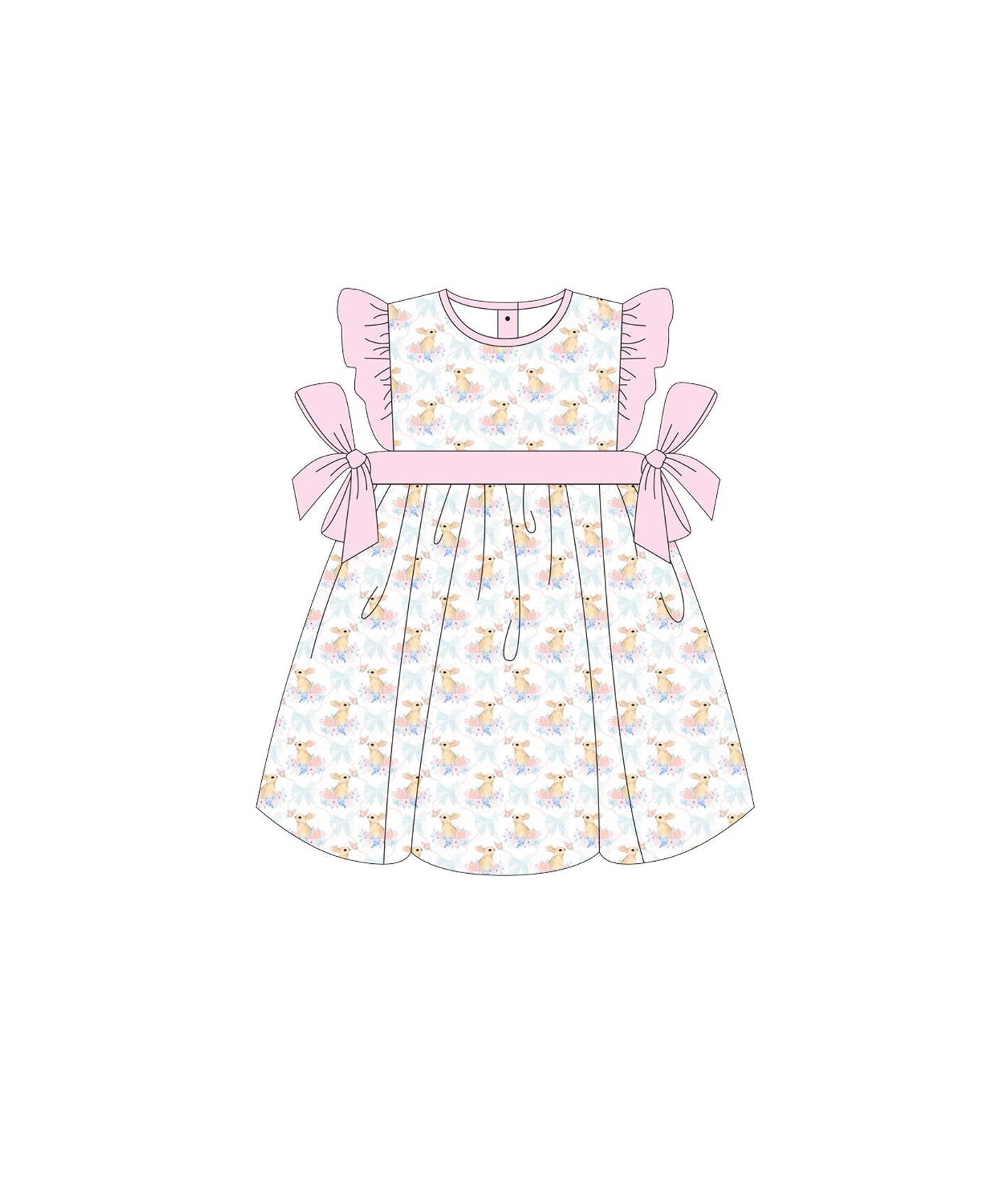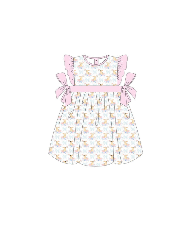 Pink flutter sleeves rabbit floral baby girls easter dress