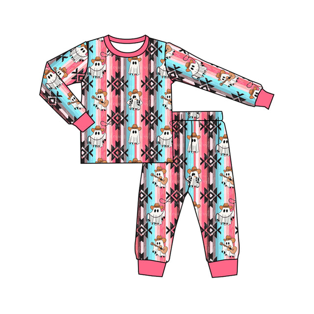 Pink ghost aztec baby girls western Halloween pajamas