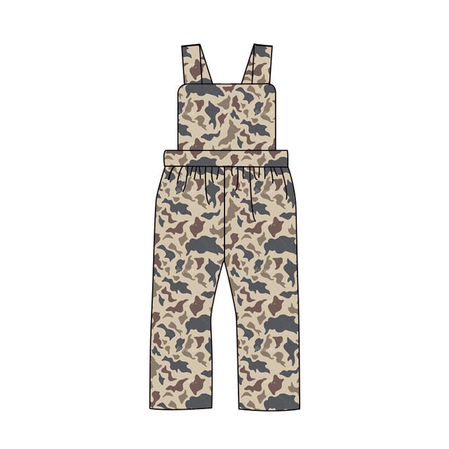 Straps dark grey camo baby boys hunting overalls - 3-6M is backordered and will ship as soon as it is back in stock.