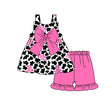 Straps moo cow bow tunic ruffle shorts girls clothing