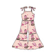 Straps pink bow boots patchwork western kids girls jumpsuit