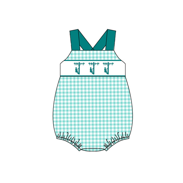 Straps plaid lineman baby boy summer romper - 0-3M is backordered and will ship as soon as it is back in stock.