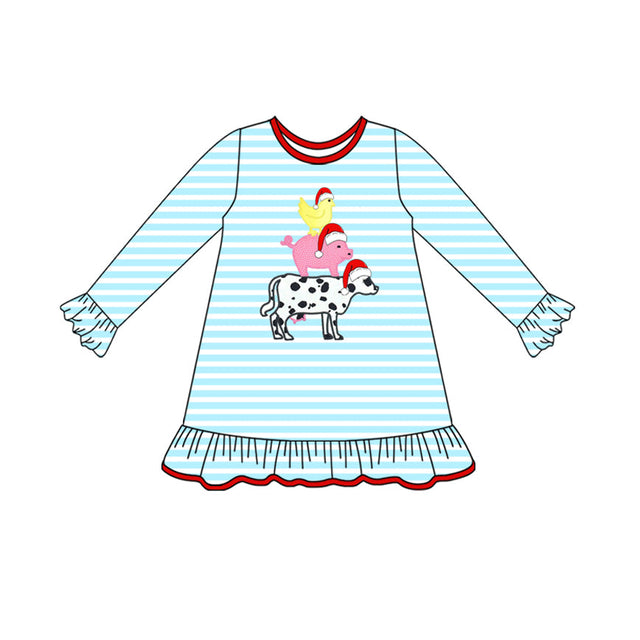 Stripe chicken pig cow Christmas hat girls dresses - 3-6M is backordered and will ship as soon as it is back in stock.