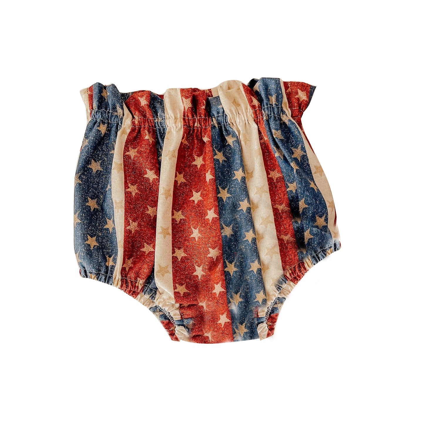 Stripe stars kids 4th of july bummies - 0-3M is backordered and will ship as soon as it is back in stock.