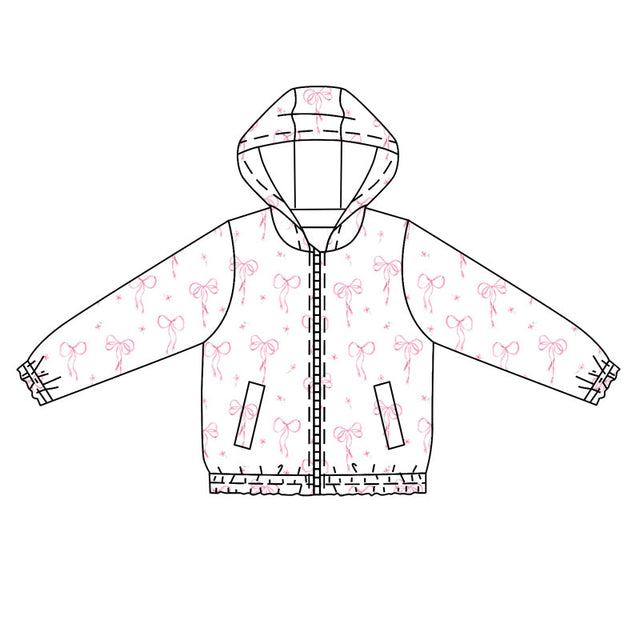 White long sleeves pink bow kids girls hooded jacket