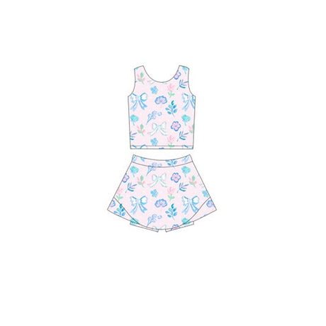From $2600Unit price /UnavailablePink floral bow sleeveless top skirt girls active set