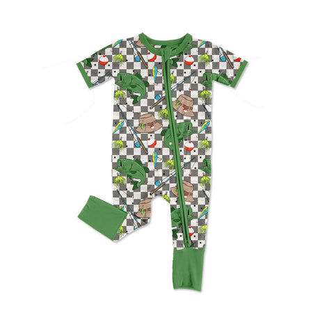 $1600Unit price /UnavailableGreen short sleeves plaid fishing baby boys zipper romper