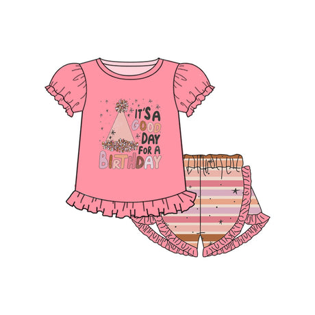 $1600Unit price /UnavailableIt's a good day for a birthday top stripe shorts girls clothes