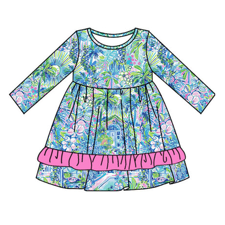 $2000Unit price /UnavailableLong sleeves ruffle watercolor blue floral girls dresses