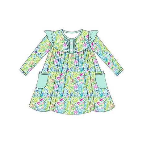 From $1600Unit price /UnavailableLong sleeves watercolor mint floral baby girls dresses