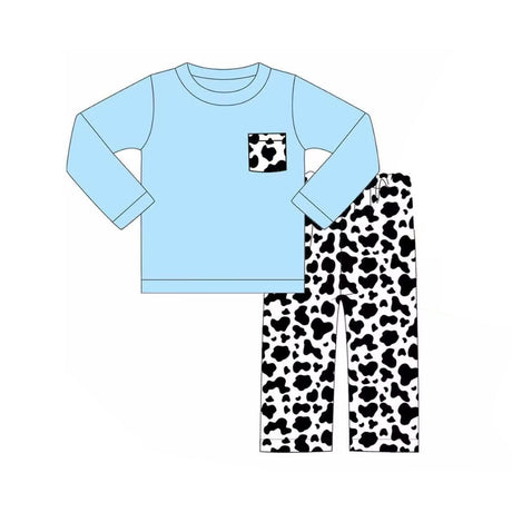 From $1900Unit price /UnavailableLight blue cow pocket top pants boys clothing set
