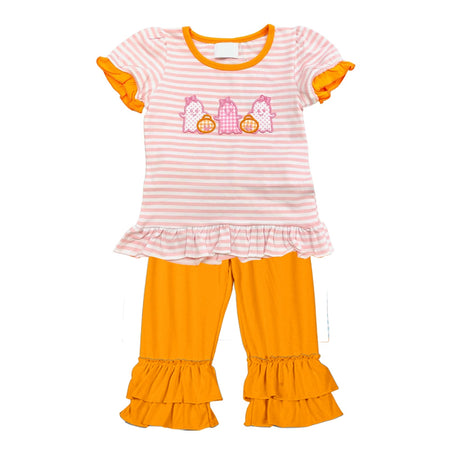 $1600Unit price /UnavailableStripe ghost pumpkin top ruffle pants girls Halloween clothes