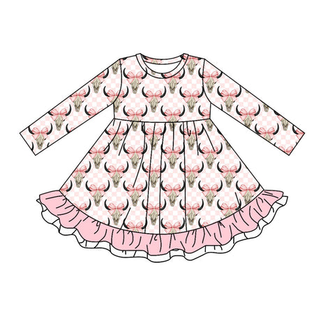 From $1900Unit price /UnavailableLong sleeves pink plaid bow cow girls ruffle dresses