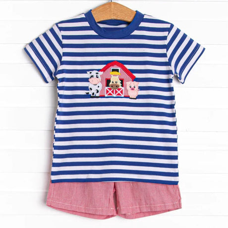 Stripe cow pig horse top shorts boys farm outfits