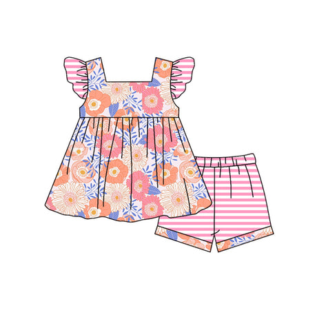 From $1900Unit price /UnavailableStripe flutter sleeves floral tunic shorts girls clothing