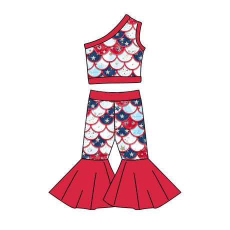 From $1200Unit price /UnavailableOne shoulder mermaid scale top pants girls 4th of july clothes