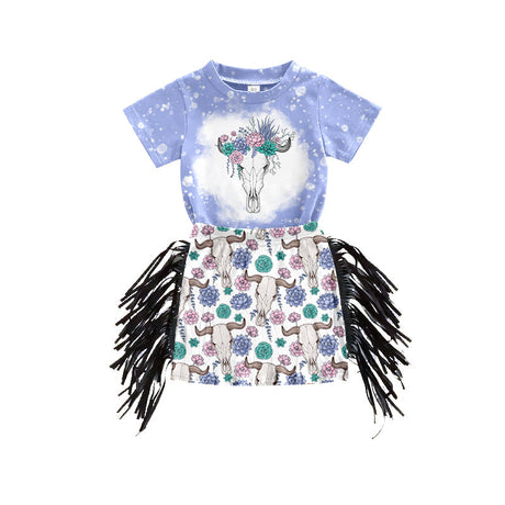 From $1600Unit price /UnavailableLavender floral bull skull top tassels skirt girls outfits