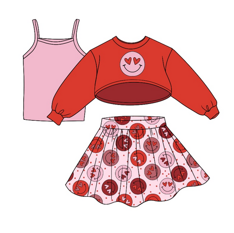 From $1600Unit price /UnavailableSuspender top smile skirt 3 pcs set girls valentine's outfits