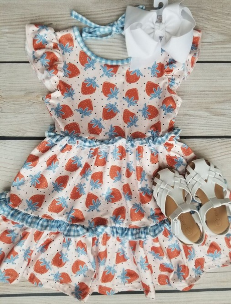From $1900Unit price /UnavailableLight blue plaid strawberry baby girls dresses