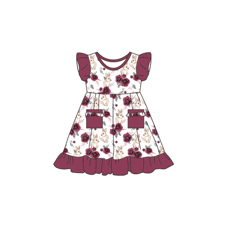 From $1900Unit price /UnavailableFlutter sleeves maroon bunny pocket girls easter dress