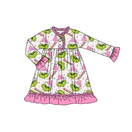 From $1600Unit price /UnavailableLong sleeves ruffle pink Christmas hat green face girls night dress
