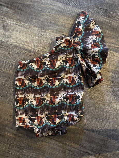 $1600Unit price /UnavailableOne shoulder turquoise cow baby girls western romper