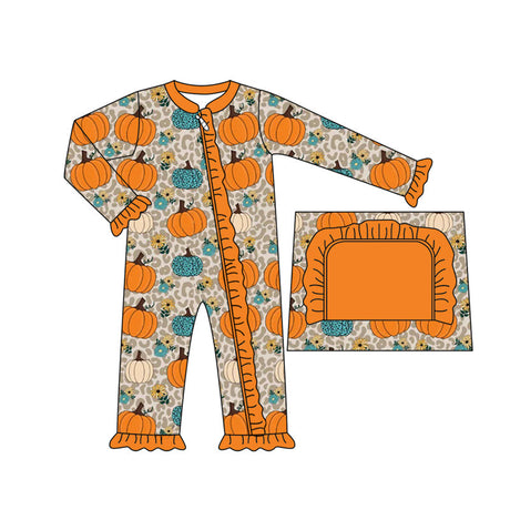 $1600Unit price /UnavailableOrange ruffle leopard pumpkin baby girls fall zipper romper