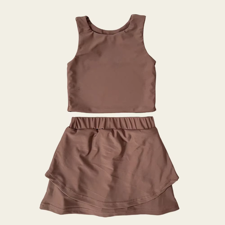 From $2400Unit price /UnavailableDark brown sleeveless top skorts girls activewear set