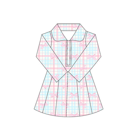 From $1600Unit price /UnavailableLong sleeves pink plaid bow kids girls athletic dress