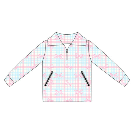 From $1800Unit price /UnavailableLong sleeves pink bow plaid zipper girls activewear pullover