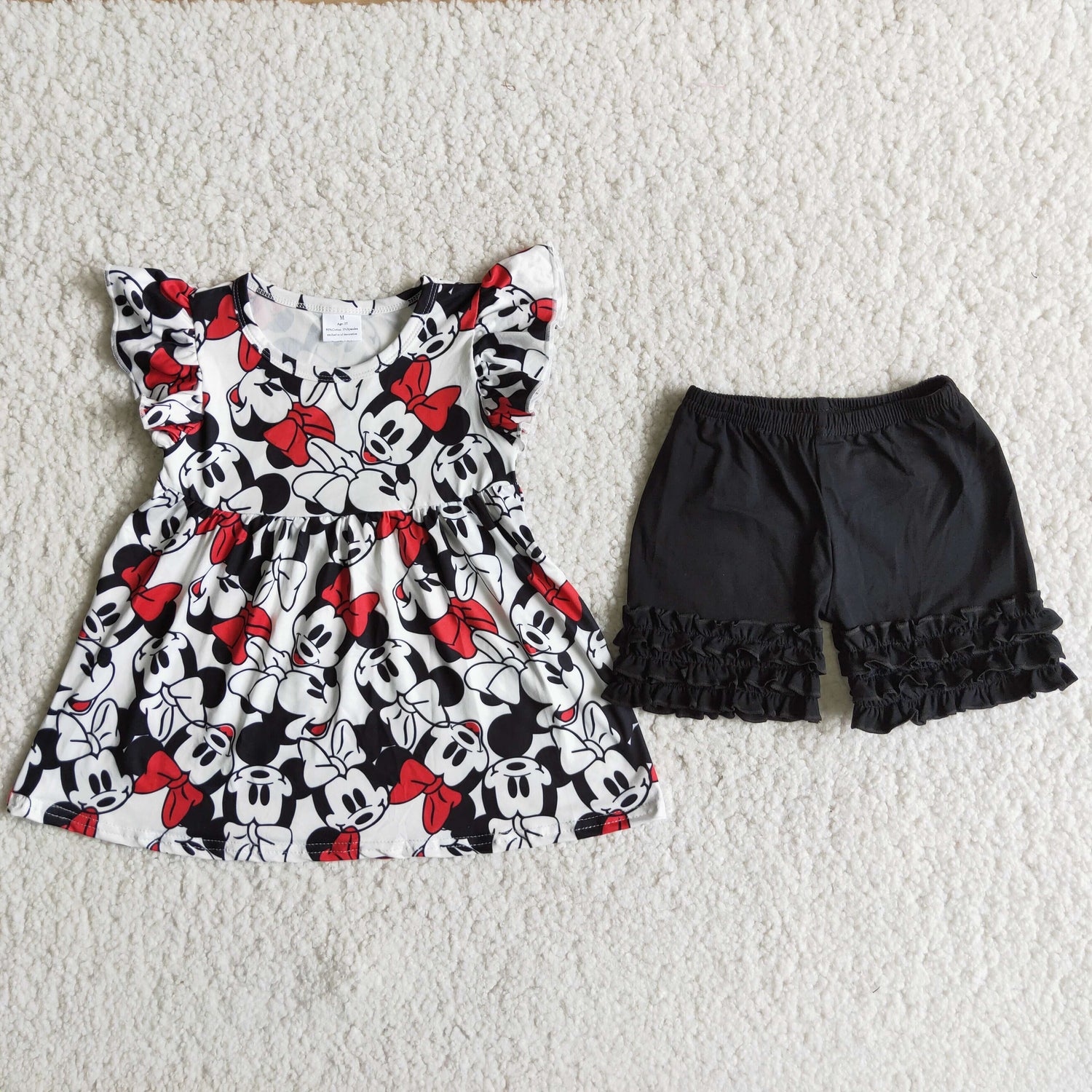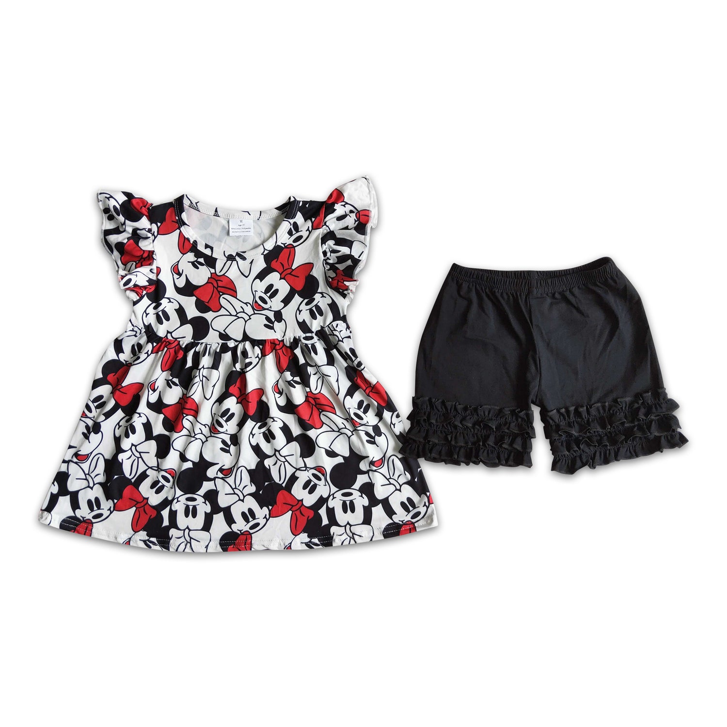 Flutter sleeve mouse tunic black ruffle shorts girls boutique clothing