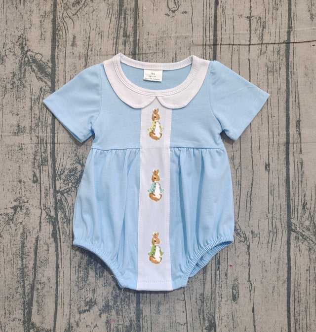 Light blue short sleeves rabbit baby boys Easter romper - 0-3M is backordered and will ship as soon as it is back in stock.