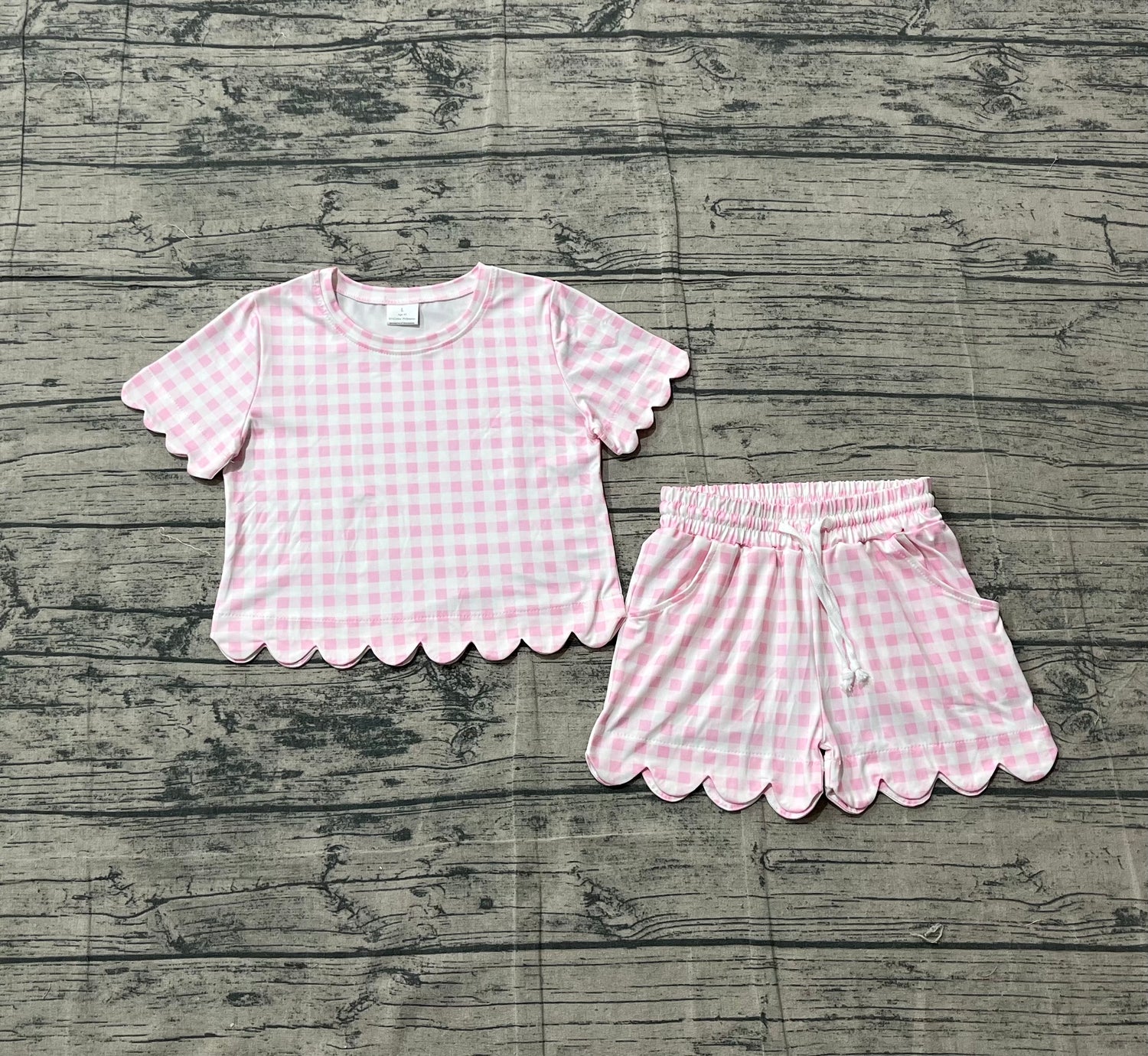 Pink plaid scallop top shorts girls summer outfit