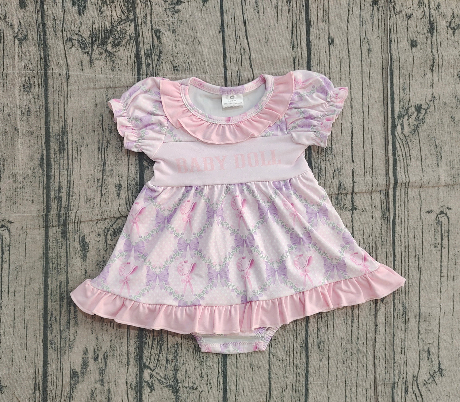 Short sleeves baby doll lavender bow girls romper