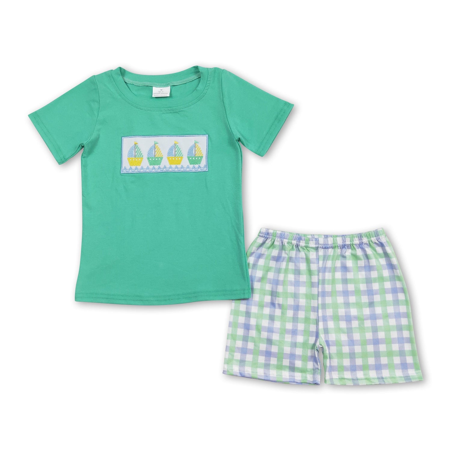 Short sleeves boat top plaid shorts boys clothing - 3-6M is backordered and will ship as soon as it is back in stock.