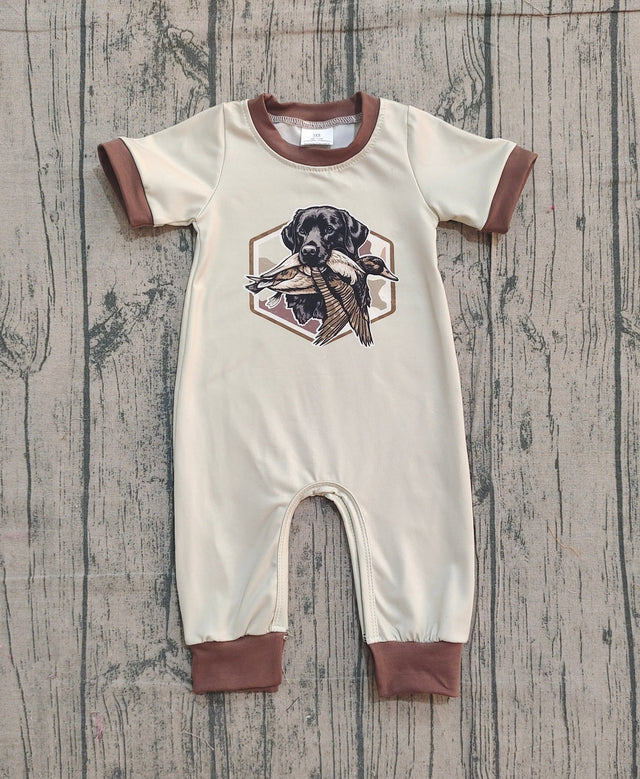 Short sleeves camo duck dog baby boy romper - 0-3M is backordered and will ship as soon as it is back in stock.