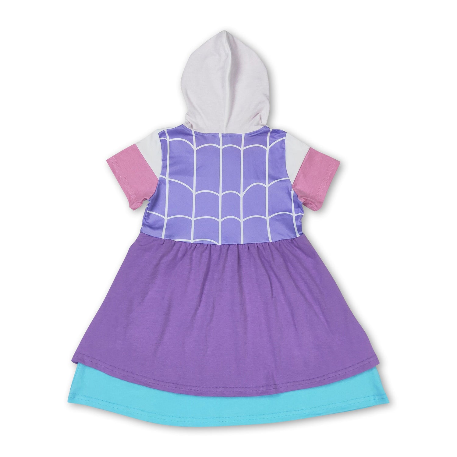 Short sleeves lavender ruffle girls hooded dress - 3-6M is backordered and will ship as soon as it is back in stock.