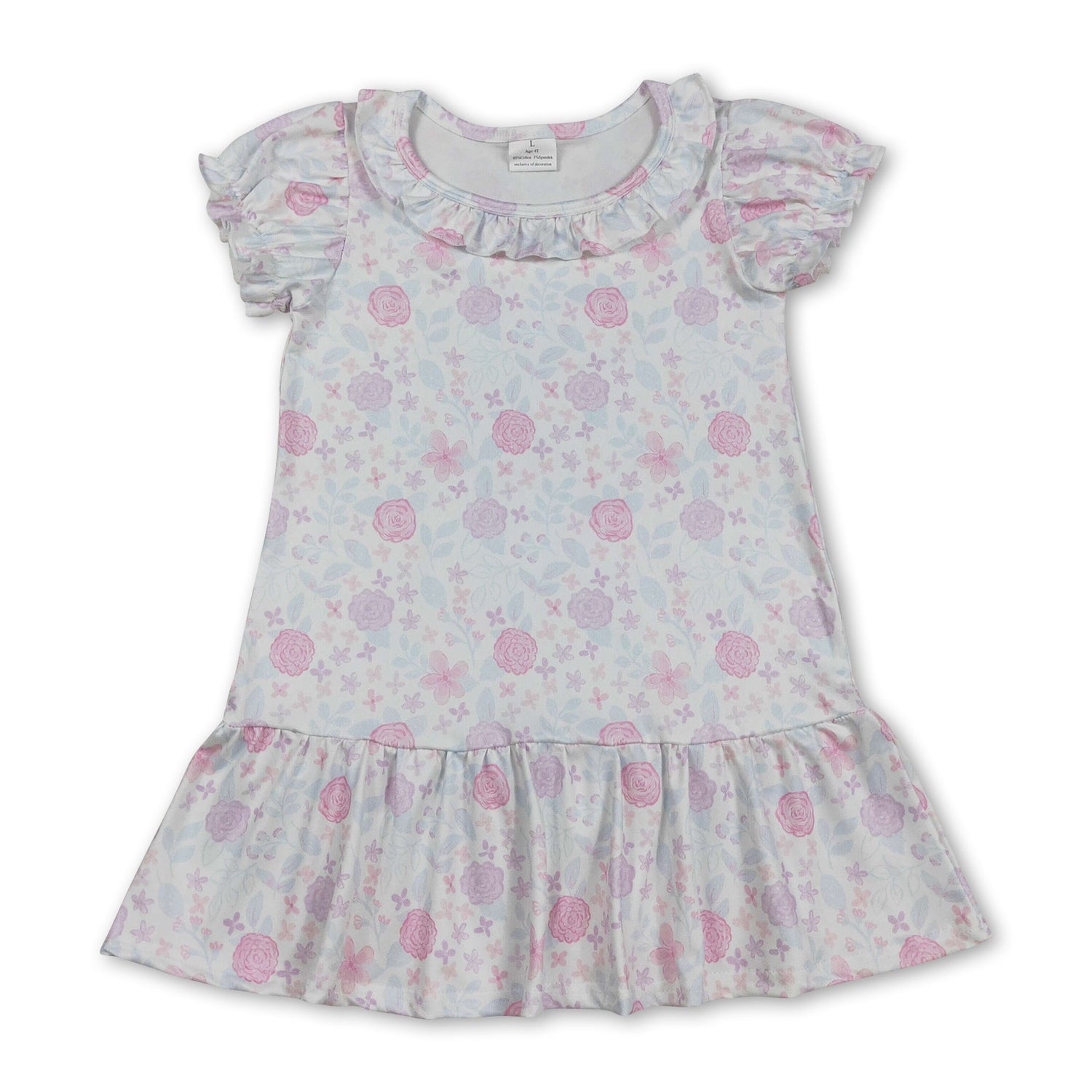 Short sleeves pink lavender floral ruffle girls dress