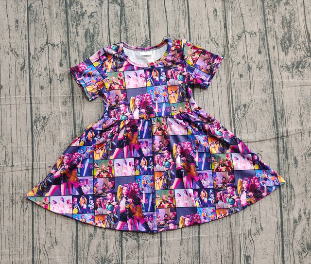 Short sleeves purple patchwork group girls dresses - 3-6M is backordered and will ship as soon as it is back in stock.