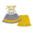 Straps plaid lineman tunic yellow shorts girls clothes - 3-6M is backordered and will ship as soon as it is back in stock.