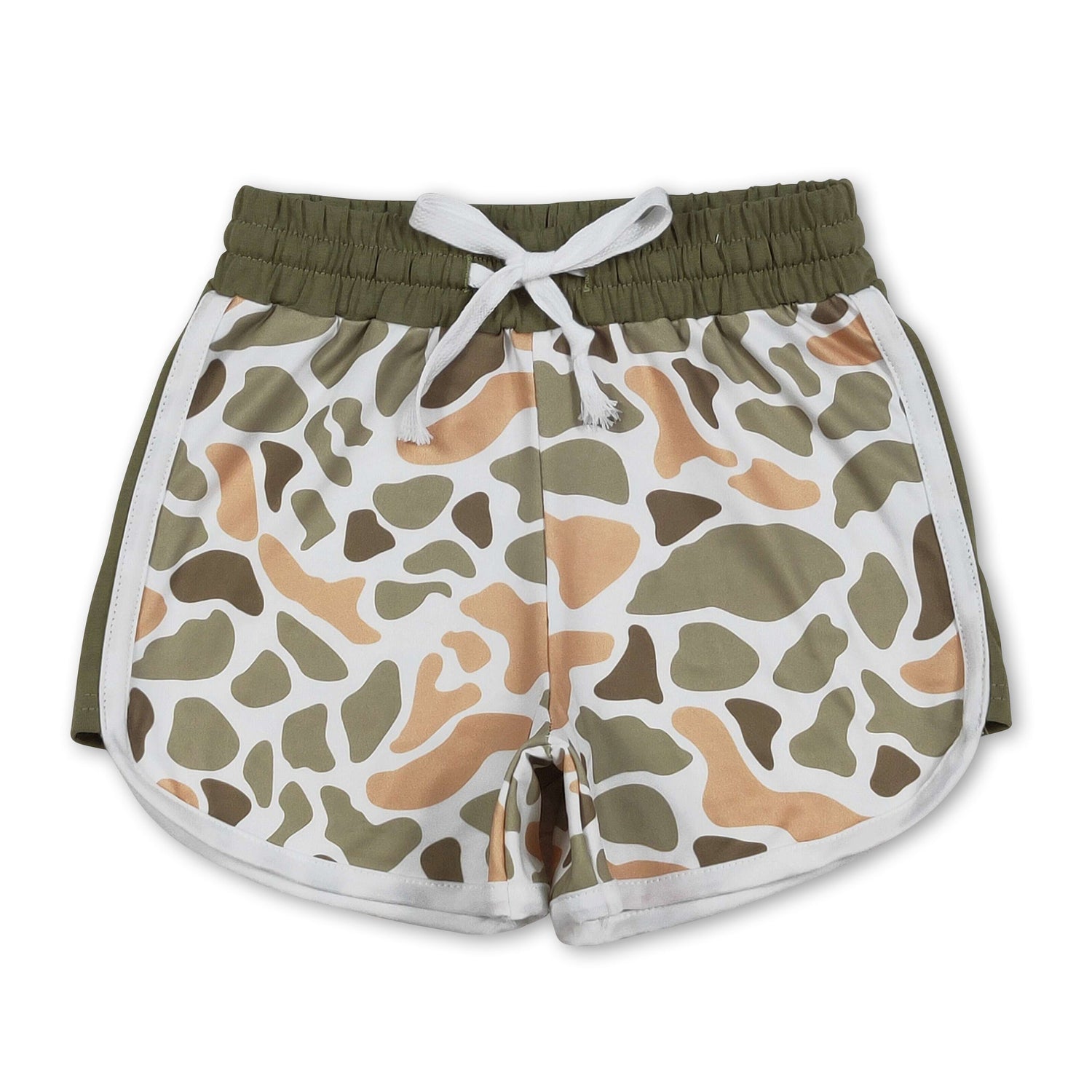 Green camo drawstring kids girls summer shorts - 3-6M is backordered and will ship as soon as it is back in stock.