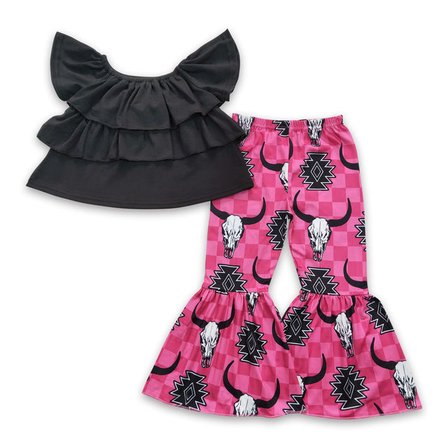 Black cotton top bull skull aztec pants kids girls western clothes - 3-6M is backordered and will ship as soon as it is back in stock.
