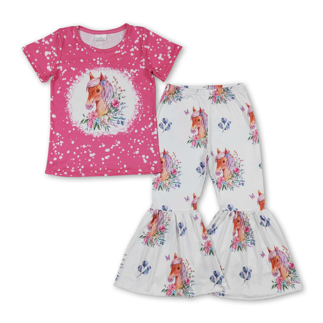 Bleached horse floral top bell bottom pants girls clothing - 3-6M is backordered and will ship as soon as it is back in stock.