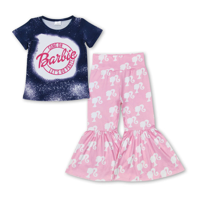 Bleached top pink bell bottom pants party girls clothes