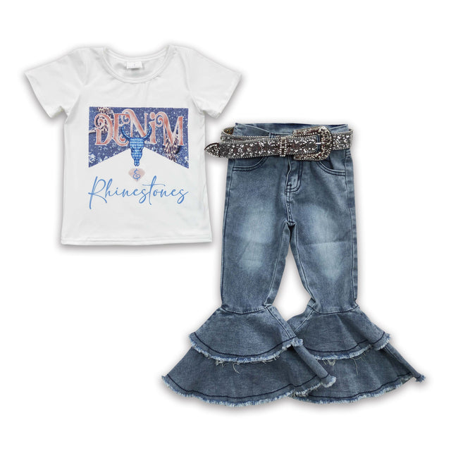 Denim bull skull rhinestones shirt jeans girls clothes - Silver belt is backordered and will ship as soon as it is back in stock.