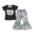 Feather print black bleached shirt pants girls clothes