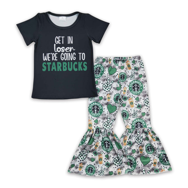 Get in coffee shirt match bell bottom pants girls clothing set - 3-6M is backordered and will ship as soon as it is back in stock.